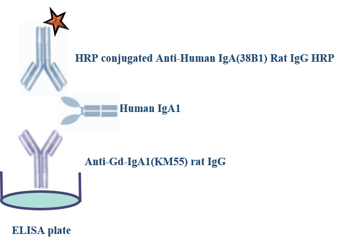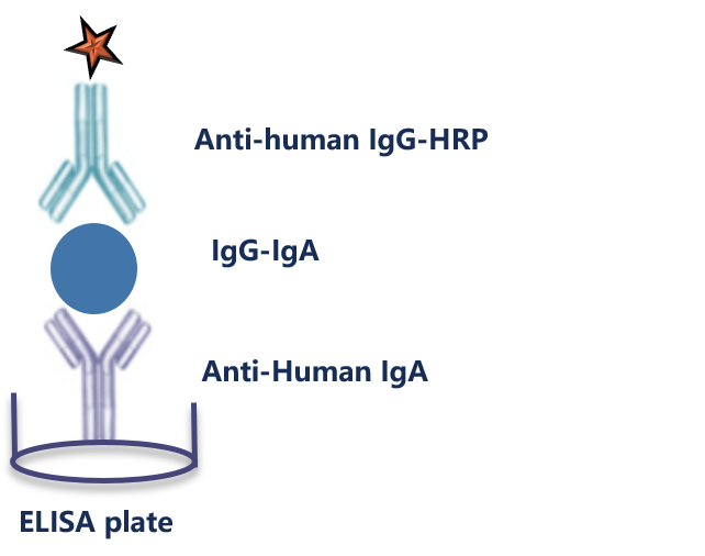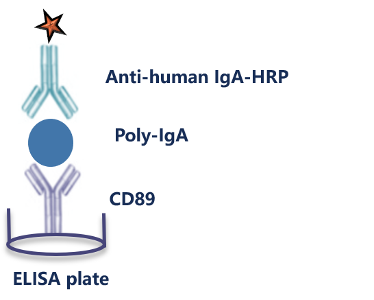 异常形成的多聚IgA免疫复合物(Poly-IgA Complexes)在肾小球沉积与IgA肾病有关。在患有IgA肾病的移植受者的肾移植中反复观察到IgA沉积,而患者体内循环的免疫复合物与从肾脏提取的IgA具有相同的免疫球蛋白类别,表明IgA的肾外来源是可能肾脏沉积的成因。由于人IgA Fc受体FcαRI(CD89) 与IgA的高度亲和性,且CD89 对多聚IgA免疫复合物的亲和力高于对单体 IgA,利用CD89可以抓取基质中的多聚IgA免疫复合物。通过IgA特异性的检抗识别被抓取的多聚IgA免疫复合物,用于检测血清中的多聚IgA免疫复合物。