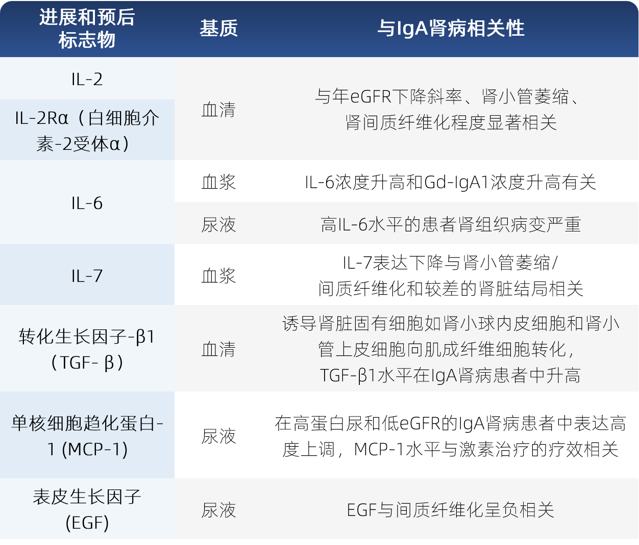 肾脏病变会产生各种细胞因子和生长因子,它们充当肾脏损伤的介质,刺激细胞增殖并增加系膜基质的产生。它们在免疫应答、炎症反应、细胞增殖和分化等方面发挥关键作用,在IgA肾病患者的血液和尿液中表现出特异性,可以作为IgA肾病疾病进展和预后标志物。尿液中各种细胞因子排泄也能反映 IgA肾病 的组织学变化,有助于评估肾脏结局。