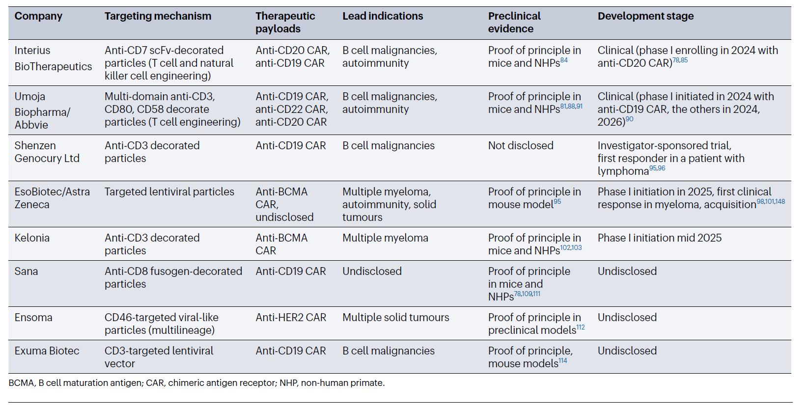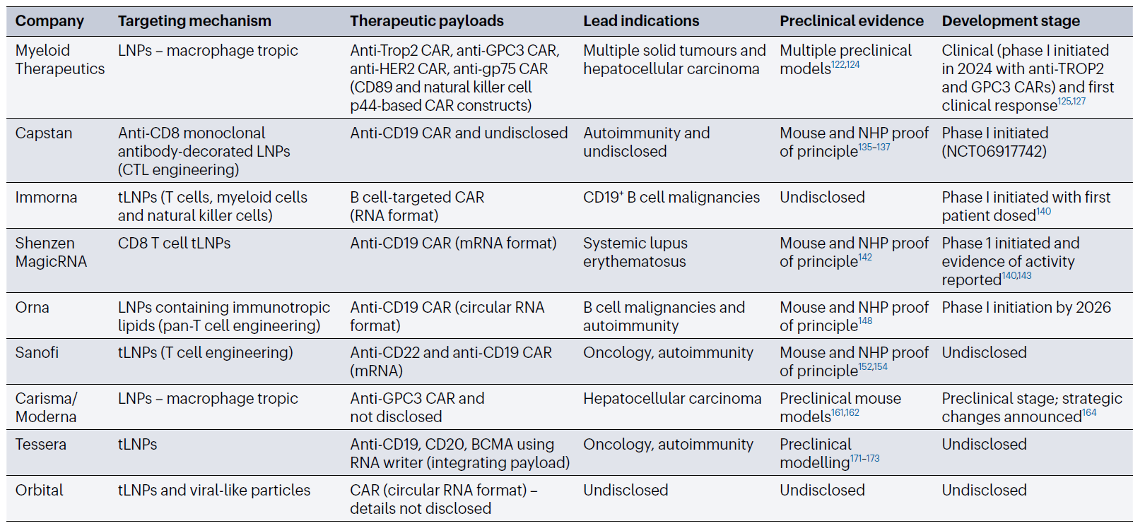[1] Bot A, Scharenberg A, Friedman K, et al. In vivo chimeric antigen receptor (CAR)-T cell therapy. Nat Rev Drug Discov. Published online September 30, 2025.