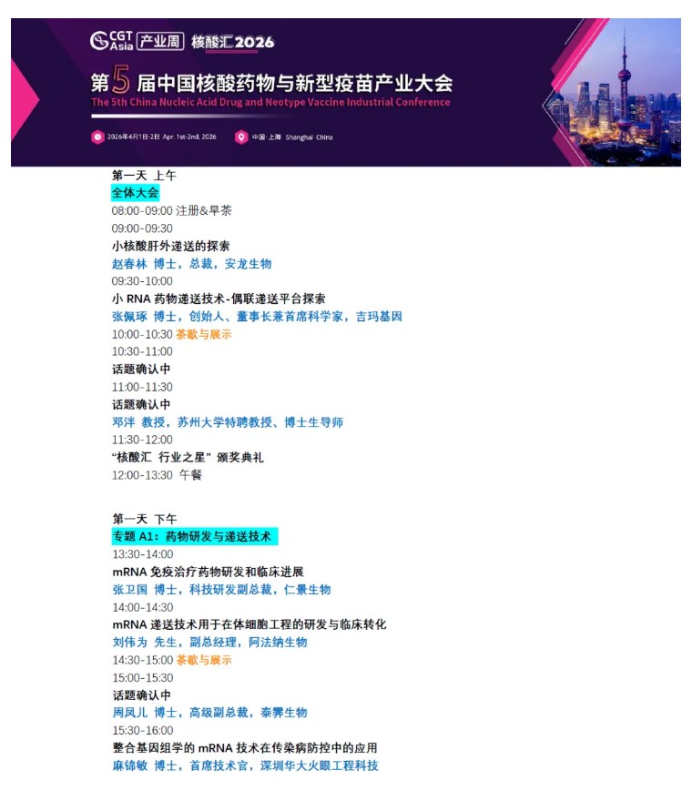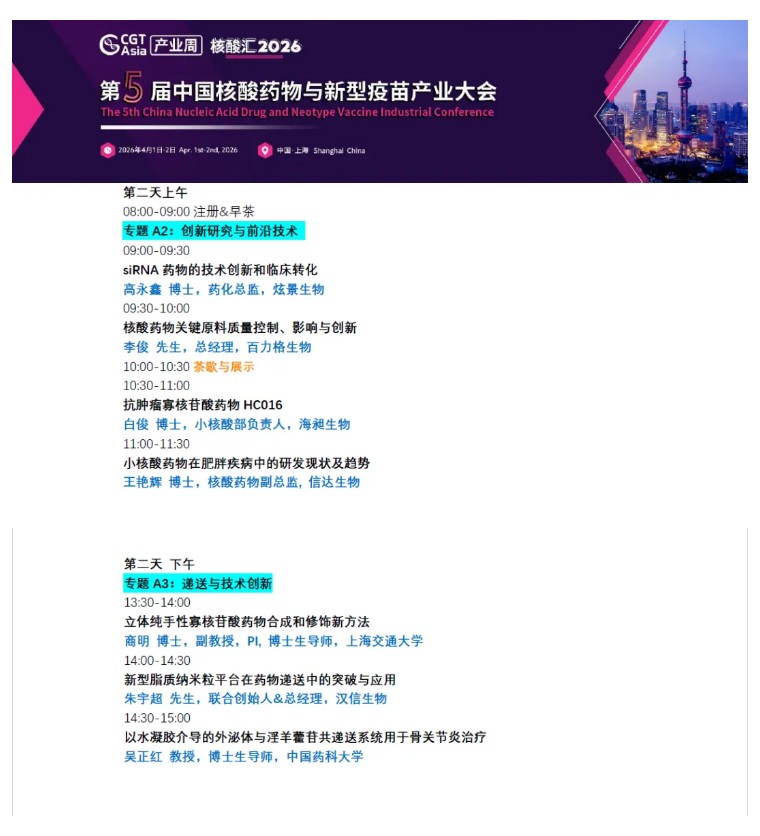 会议邀约 | 熙宁生物邀您参加核酸汇 2026 第五届中国核酸药物与新型疫苗产业大会